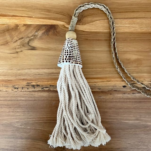 Borla colgante de concha y macrame