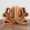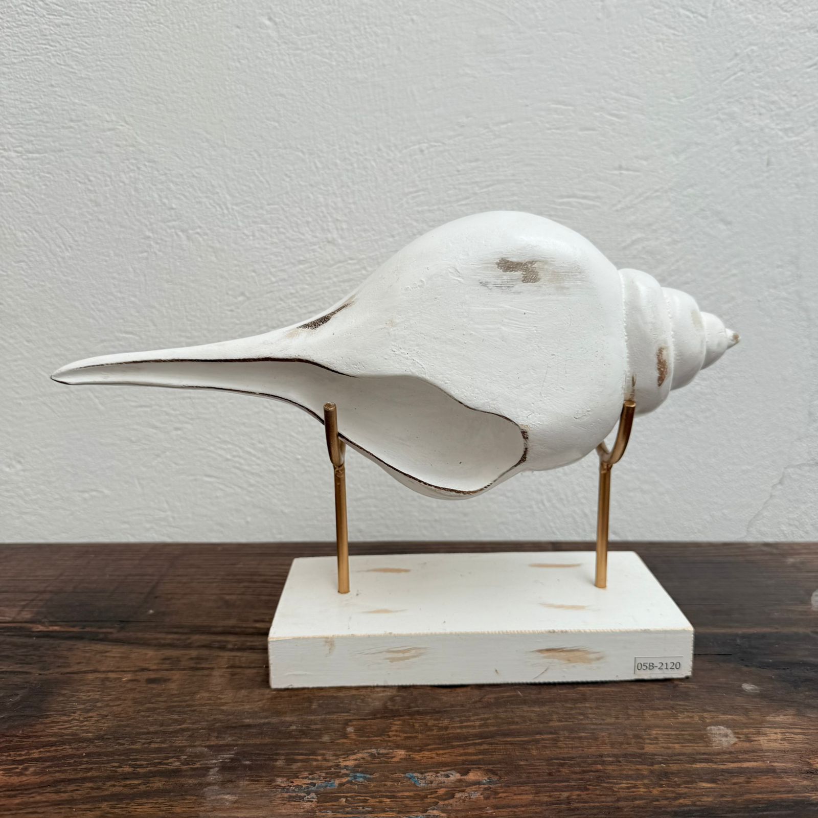 Adorno hecho a mano en madera acacia, con soporto de metal.