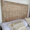 Cabecera de cama tallada en madera teca, con modelo de flor frangipani.