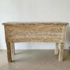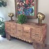 Consola tallada en madera teca reciclada. Color café envejecido.