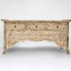 Consola tallada en madera teca reciclada con 5 cajones. Utilízala en un dormitorio o una sala.