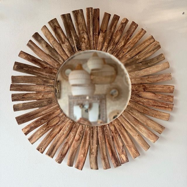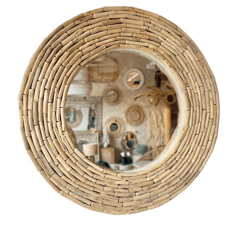 Espejo tallado a mano en madera durian.