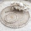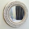 Espejo elaborado con conchas de caracol blanco tejido con macrame. Ideal para una decoración en la playa.