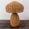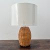 Lámpara en rattan natural con pantalla de tela.