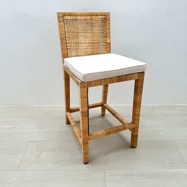 Silla en rattan natural. Si deseas ubicarla en el exterior recuerda que debes ponerle un forro de protección contra el sol y lluvia.